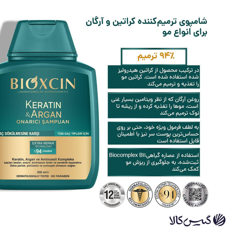 شامپو کراتین آرگان بیوکسین به طور کلی، برای تغذیه و محافظت از مو در برابر آسیب طراحی شده است و همچنین فاقد سولفات، پارابن و فتالات است و کاملا از مواد ارگانیک و گیاهی ساخته و تولید شده است.